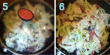 5、加盖焖至花菜变色。