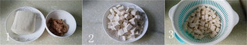 3、 豆腐在开水锅中略煮,捞起后沥干水分。