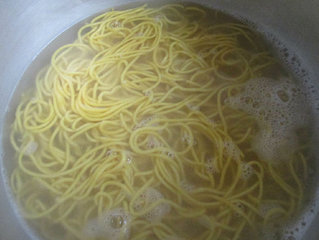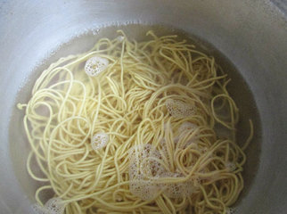 11、把面条捞起,加入由鱿鱼汤,胡萝卜鱿鱼面。