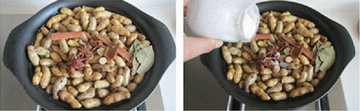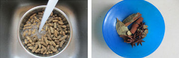 3、将洗干净的花生放入锅中,加入没过花生的水并加入大料。
