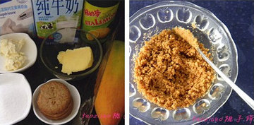 主料:奶油芝士175克,新鲜芒果泥220克,消化饼干(慕斯底)80克