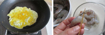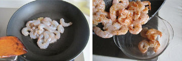 7、烧热锅,放少许油,下入腌制好的虾仁翻炒。