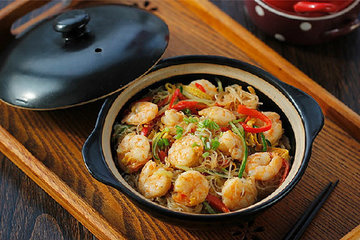 这道五彩虾仁粉丝煲的做法特别简单,而且营养也非常丰富。这道五彩虾仁粉丝煲是用普通的粉丝吸收虾的鲜美,会变得滋味十足,而搭配五彩蔬菜丝不仅让营养丰富,而且色彩更艳丽, 口感更有层次。