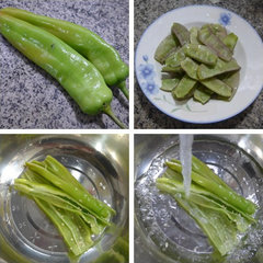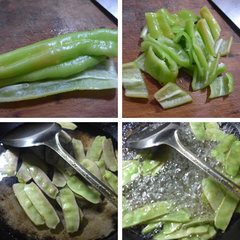3、烧锅倒油烧热,下入切好的尖椒翻炒翻炒至断生。