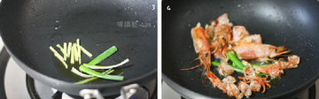 4、倒入虾头虾壳,继续小火煸炒。虾头虾壳要提前洗净沥干水分。