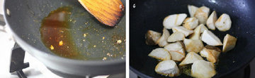 7、杏鲍菇颜色变深,体积缩小,边缘微微起焦后,加入照烧汁。