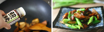 3、芦笋段入锅后不要炒太久,颜色变深就可以调味出锅,尽可能的保证芦笋的脆嫩。所以挑选食材时要选择比较嫩的部分。