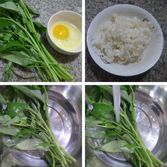 主料:空心菜,鸡蛋(已打入碗中),米饭