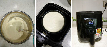 3、拌至融合后,入蛋糕模,微振之后,入预热好的空气炸锅,进行150度,45分钟的烤制。