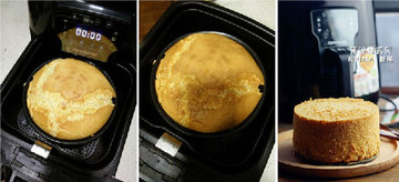 4、第一图是30分钟的样子,第四张是45分钟的样子,烤制好后,倒扣放凉脱模即可。