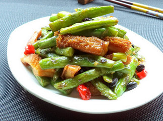 主料:卤牛肚250克,四季豆500克,青红椒50克,豆豉10克,大蒜15克
