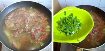 8、食用前加入香菜末,美美地牛肉冬瓜汤就出锅咯。