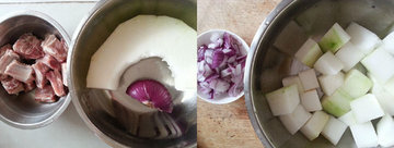 主料:排骨200克,冬瓜180克,紫洋葱40克