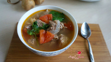 这道牛腩番茄汤的做法非常简单,而且营养也特别丰富。夏天没有胃口,这道牛腩汤,特别是加了番茄之后,不但能使牛肉熟得快,还让汤微微酸中带甜,开胃有营养。加入一点香菜,味道更浓郁。