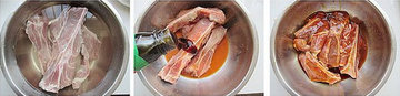 1、将猪排泡出血水,沥净水份备用。