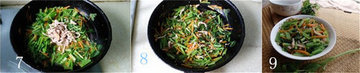 3、芹菜、胡萝卜、肉丝已加工,大火快炒即可。