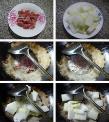主料:咸瘦肉(已切),冬瓜(已去皮去籽清洗切开)