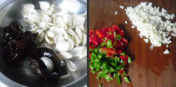 1、黑木耳,百合用清水浸泡,发胀洗净。