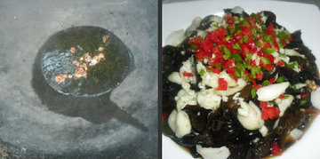 8、将热油淋入青红椒,蒜碎上,吃时拌匀即好。