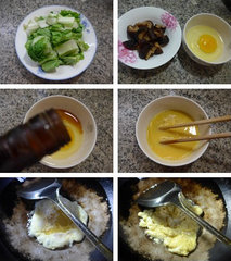主料:五号菜(已洗净切开,香菇(已泡发清洗切开),鸡蛋(已打入碗中)