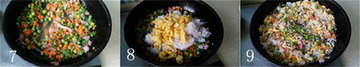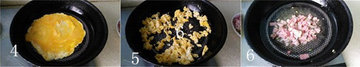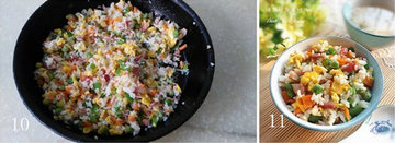 4、炒饭用隔夜剩饭最好,水分、粘性小,粒粒分明。
