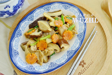 主料:里脊肉,鲜香菇,胡萝卜,蒜片,香葱