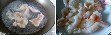 7、锅里水烧开,放入敲打好的虾片煮熟。