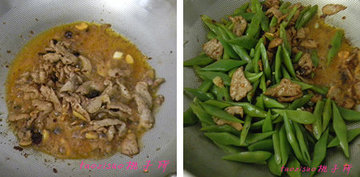 8、再倒入扁豆角,翻炒均匀放入食盐、鸡精调味即可。