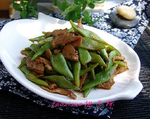 主料:扁豆角300克,里脊肉80克,食盐4克,食用油10克,料酒5克