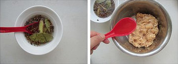 7、将一把花椒 两三片香叶,一个八角,一丁点桂皮,三四片姜用温水泡出香味后放凉备用。