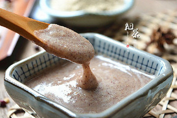 8、食用时取约25g的红豆薏米粉,兑入约110g开水调拌成糊状,待不烫时放入适量蜂蜜调匀即可。