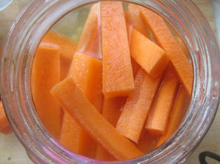 3、把胡萝卜放到密封罐里。