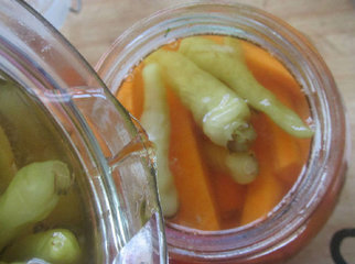 4、倒入野山椒,密封放入冰箱约7--15天,即可泡透。