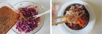 5、加入准备好的紫甘蓝丝。