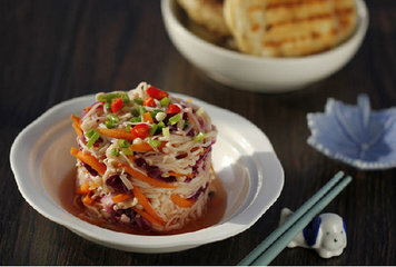这个凉拌红油金针菇的做法特别简单,而且营养也非常丰富。这道菜在夏天是最受人爱戴的小菜,它的制作也很简单,金针菇经沸水焯过后过凉水可使其爽脆,再配以应季的小蔬菜丝,最后加入调味料汁调匀即可。料汁的调制可以根据个人的喜好和习惯来选择材料,用点红椒油更加酸辣开胃。