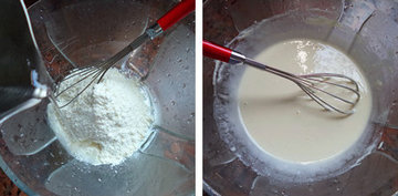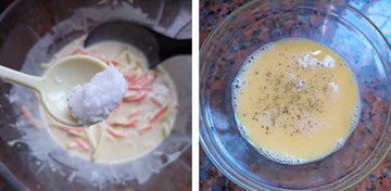 6、鸡蛋打发,加入少许盐与黑胡椒碎拌匀。