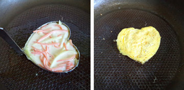 7、起锅,烧热,放油,可借助一个模具煎饼,如果没有,请忽略。