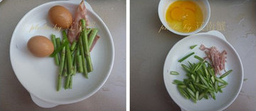 主料:鸡蛋,芦笋,培根(可选我那天刚好有这么一段,就加上了)