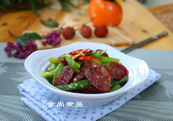 这道杭椒炒腊肠的做法非常简单,而且营养也特别丰富。这湘味腊肠是经过烟熏的,为了保险起见,先将腊肠洗净,再放入锅大火中煮15分钟,捞起切片后和辣椒一起爆炒,炒制腊肠时,味道闻起来虽辣,吃起来一点也不辣,比湘菜馆里的小炒还好吃。