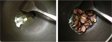 3、坐锅上火倒入调和油爆香大蒜。