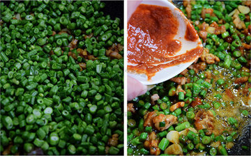主料:豇豆500克,猪肉150克,大蒜,香葱适量
