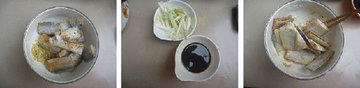 1、带鱼段清洗干净,加盐胡椒粉和料酒腌上。