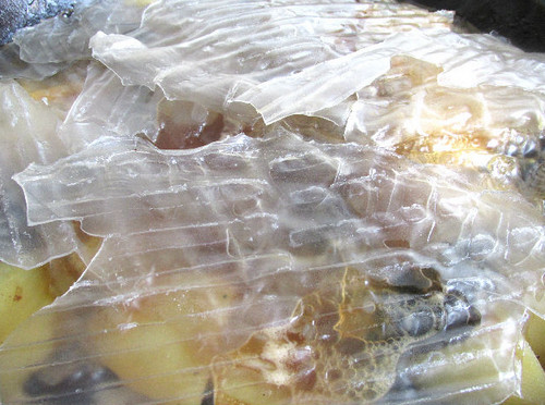 10、炖到粉皮透亮,柔软即可放盐和鸡精调味。