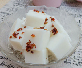 主料:杏仁片80克,白糖80克,奶粉40克,琼脂35克,水1500ML