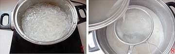 1、打好的杏仁浆要过筛,这样做出来的杏仁豆腐更细腻。