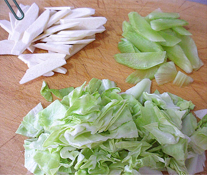 主料:猪里脊肉,洋白菜,莴笋,茭白