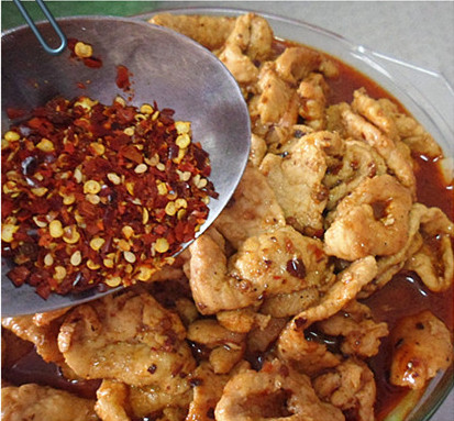 配料:水煮肉调料,干辣椒末,淀粉,料酒