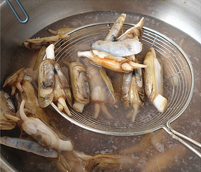 3、蛏子在沸水中烫熟。