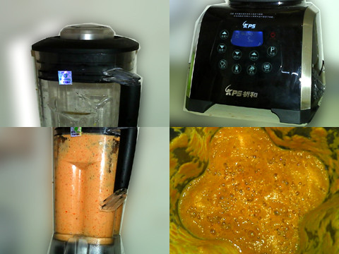 2、盖上盖子,选择蔬果键,搅打成细腻浓浆。