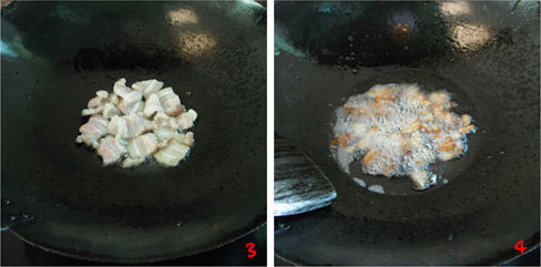 4、小火炸出油,同时油渣取出备用。